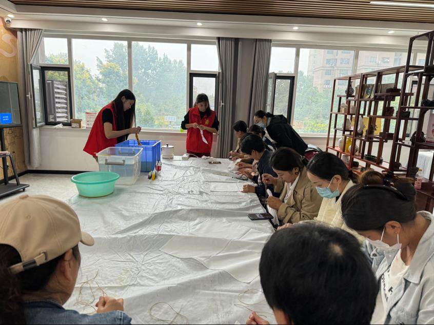 妙手生花,绘就的不仅是布帛上变幻莫测的纹样,更是社区邻里间和谐温馨的幸福图景。 此次活动,不仅让居民们领略了传统工艺的独特魅力,更在亲身体验中增强了文化自信与社区归属感。下一步,我院青年志愿者服务队将继续秉持初心,开展形式多样的志愿服务活动,为促进基层治理现代化,构建和谐社区贡献青春力量。