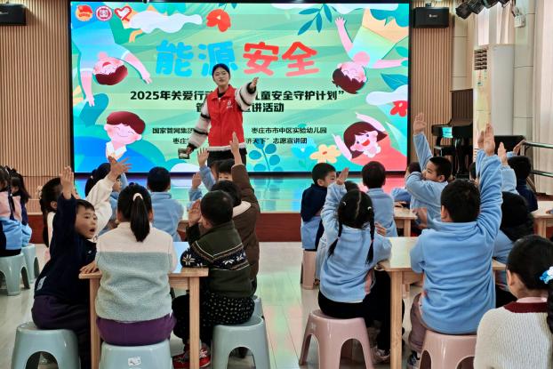 活动第三站聚焦枣庄市市中区实验幼儿园,为学龄前儿童量身定制了一场充满童趣的能源安全启蒙课。志愿者化身“能源安全老师”,通过故事化、情景化的“能源安全小卫士在行动”主题课程,在志愿者们的引导下,孩子们用彩笔、贴纸等工具,为管道模型“穿上”漂亮的“保护外衣”。这场融合了游戏、手工与知识的沉浸式体验,让抽象的“保护”概念变得可视、可触,在幼小的心灵中深深埋下了爱护能源设施、注重公共安全的种子。