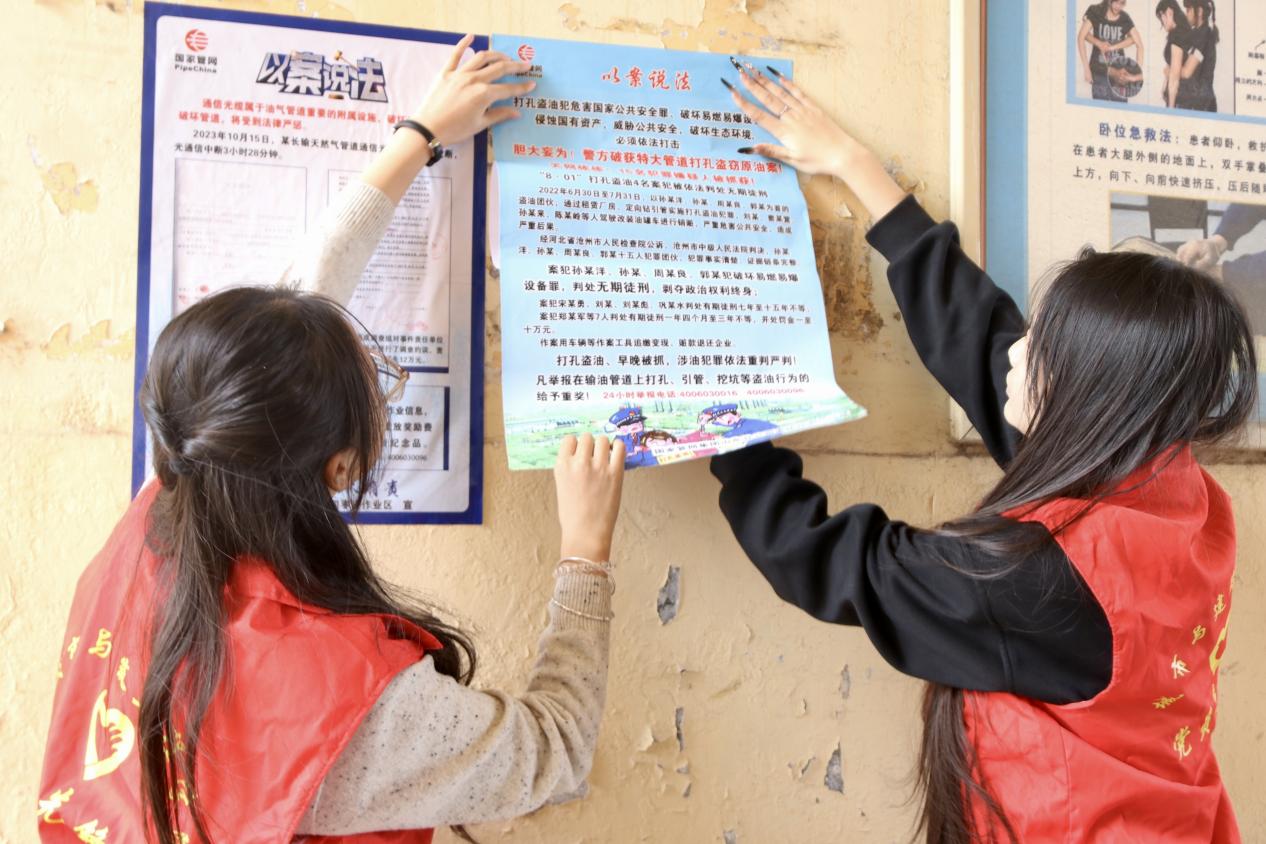 此外,志愿者们还深入社区各个角落开展走访宣传,通过“以案说法”的方式向居民们耐心细致地讲解管道保护的日常注意事项,并普及相关法律法规,介绍了打孔盗油等违法犯罪行为对国家公共安全、国有资产及生态环境的严重危害,以及相关违法人员所面临的严厉法律制裁,引导居民自觉遵守法律法规,主动参与到管道保护工作中来。
