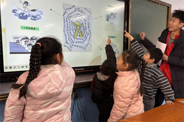 此次联合宣讲活动的志愿者团队由千亿QY88官网“城心承道·道济天下”管道保护志愿宣讲团、“匠心筑梦”宣讲团、“墨韵传承·童心筑梦”宣讲团、大学生心理健康协会以及国家管网集团山东公司“齐鲁橙”青年志愿服务队、枣庄市慈善总会青云志行志愿服务队共同组成。在联合宣讲环节,国家管网集团山东公司宣讲员王翔将专业的能源安全知识转化为生动易懂的讲解,让管道保护意识深入童心;我校志愿者苏万磊则通过亲身经历,向孩子们传递奉献精神,鼓励他们用行动服务社会。在关爱行动进教室环节,志愿者聚焦育人实效,发挥专业所长,精心构建了四大特色课堂:“我是管道建设师”课堂注重实践体验,传授管道保护知识;“拥抱心灵·感悟情绪”课堂通过游戏引导情绪管理;“祖国旗帜在我心”课堂厚植家国情怀;“班墨匠心·非遗筑梦”课堂将安全知识与非遗剪纸相融合。系列课堂形式生动、内容充实,实现了知识传授与价值引领的统一。